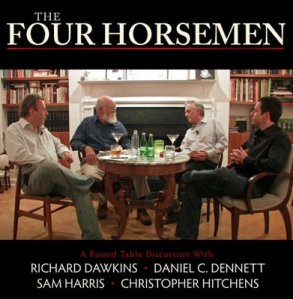 This weekend, a friend alerted me to an interesting DVD special where four of the more prominent atheists out there right now (Richard Dawkins, Daniel Dennett, Christopher Hitchens, and Sam Harris) get together for a round-table discussion. The two hour unmoderated discussion is, interestingly, entitled “The Four Horsemen“—a reference, presumably, to the protagonists’ understanding of themselves as the agents entrusted with the hastening of the demise of the blight upon human history that is religion.