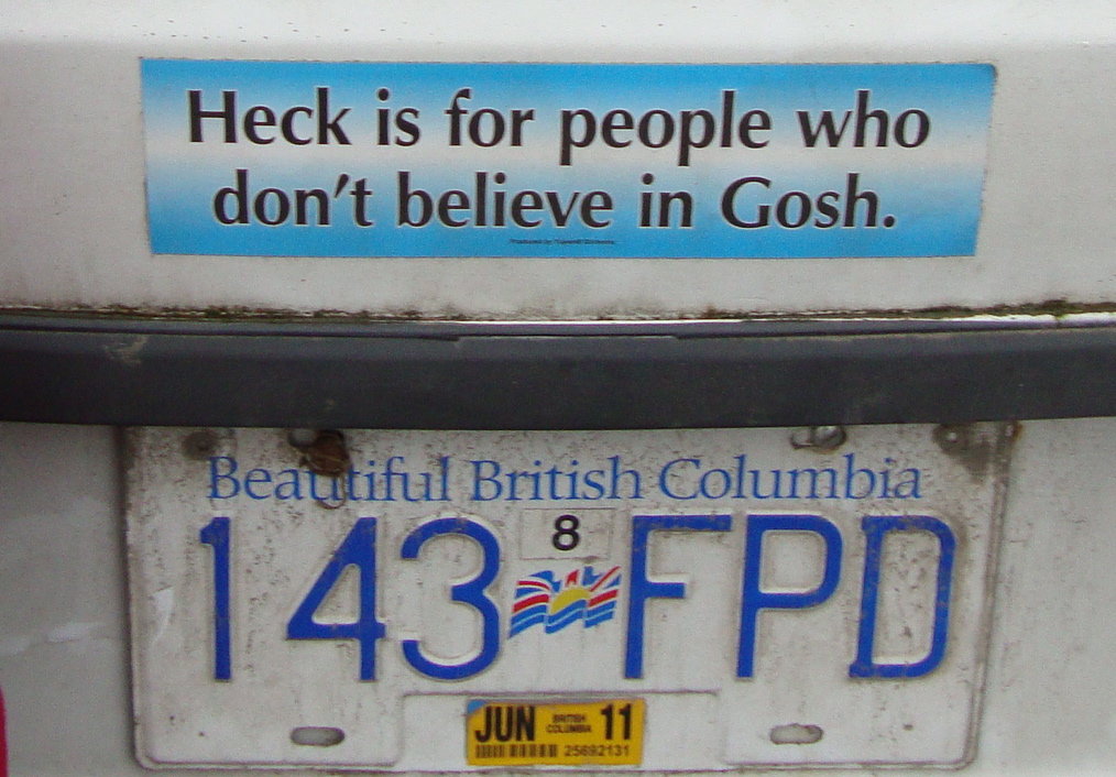 Some lighter fare for a sleepy Sunday afternoon… I couldn’t help but chuckle at this bumper sticker, spotted yesterday at the Saturday Market over on Salt Spring Island.