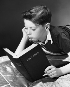 We usually give our kids at least half an hour to read before bed each night, and lately my 10 year-old son has taken to reading the Bible. Not a kids’ Bible or an illustrated Bible, or anything like that, mind you. We’re talking the real thing here—a New American Standard Version, Gideons Bible that his sister inherited at the VBS put on by some local churches a few weeks ago. They were giving out free Bibles to the kids who didn’t have one—like, say, pastors’ kids. Sheesh.