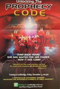 You can imagine how excited I was to receive a personal invitation to this “spectacular multimedia seminar unlocking the mysterious symbols of Bible prophecy.” This Friday, in a hotel ballroom near me, it will all become clear! Mysteries will be unraveled, secrets revealed, texts decoded, dates and political realities predicted, ominous portents heralded. And all in a week-long extravaganza! Bring the whole family! And make sure you sign up for the free continental breakfast and the discounted pass for the water slide so you’ll have something to do when you’re not learning about beasts and blood and the fiery end of the world as we know it.