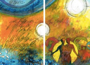 The image above is taken from the 2011-12 Christian Seasons Calendar. Among other themes, Carolyn Coolidge Brown’s “In the Beginning” portrays the mystery of humanity bearing the image of our Creator God.