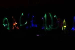 The image above was taken at a recent kids’ night at our church. The kids were all given glow sticks and told to try to spell a word with them in the air while the lights were turned the off in the sanctuary. They were trying, very appropriately, to spell the word “Hallelujah.”