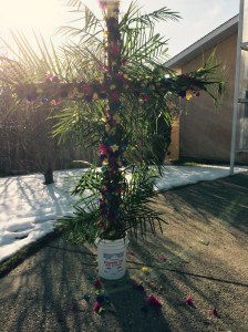 This morning I came in to church and was greeted by the image to the right. Our flowered cross was more resilient than I expected it be. But the weather had obviously taken its toll. And I thought, “Isn’t this kinda what life looks like after Easter Sunday comes and goes, after the lofty rhetoric fades, after we move back into the world where things always die? After the colour begins to fade, after the snow and the wind and the cold have taken their toll. After the world goes back to business as usual. This cross, vulnerable and exposed, tells the story of who we are, doesn’t it? We who have been dragged from an empty tomb into the promise of new creation. We whose eyes and ears, like those of the first witnesses, have been shocked into the possibility of resurrection.