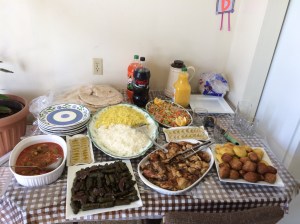 Our time together was wonderful. The company was marvelous, the conversation was lively, and the food was incredible, as the image above makes clear (our Syrian host has even agreed to come over to our place some time in the future to teach my wife how to cook some of this food!) But even more important and meaningful, in my view, was the fact that genuine friendships are forming. That’s what happens when you break bread together. That’s what happens when you share stories and listen to one another. That’s what happens when you are curious and ask questions and pay attention to responses. That’s what happens when you cross boundaries between cultures and religions and nationalities and customs and languages and, having done this, or at least taken steps in this direction, arrive at the not-so-astonishing discovery that there are human beings, just like you, waiting on the other side.