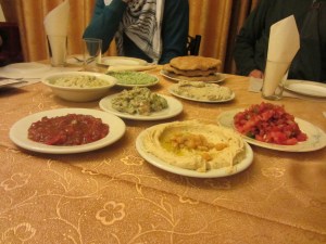 Over the next several hours, we dined like royalty. There was hummus and bread and baba ghanoush and innumerable salads, and lamb and chicken kebabs, and baklava and strong Arabic coffee and all kinds of other dishes that I frankly couldn’t identify but which were delicious nonetheless. George buzzed around the place like a bee. While his mother was busy in the back, George ferried the food out continuously. He spoke little English, but his smile lit up the room.