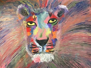 I thought about linking the image above to the themes of this post with some clever reference to The Lion, the Witch and the Wardrobe, and Aslan on the stone table or that quote about how God isn’t a “tame lion”or some such thing. But really, I just wanted an excuse to post a picture that my daughter made with her fingers and some paint yesterday while convalescing after having her wisdom teeth pulled. Not a bad example of pain being transformed by beauty, it seems to me 🙂