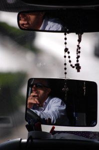 I took the picture above in the backseat of a van or a cab (I forget which) during a trip to Palestine last year. It speaks to me on a number of levels of reflecting on the road traveled and the road ahead.