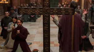 One of the underlying themes in the show so far is a barely concealed contempt for Christianity. It is the pagan Danes whose ways are portrayed as superior to superstitious and greedy Christians who take refuge in futile fantasy. The Danes trust their swords and the healing powers of the earth (and sometimes Odin). They do not waste time frantically crossing themselves or flailing around in misguided obeisance and penance to the Christian God. On more than one occasion, some hapless Christian Saxon has found himself at the end of a Danish sword and faced with the question, “Will your God save you now? Will your God give you victory? Is your God any use? If so, let him prove it! ” The scene usually ends with a silent God and a dead Saxon.