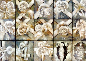 The image above is taken from the 2021-22 Christian Seasons Calendar. It is called “Stations of the Cross” by Mary Jane Miller.